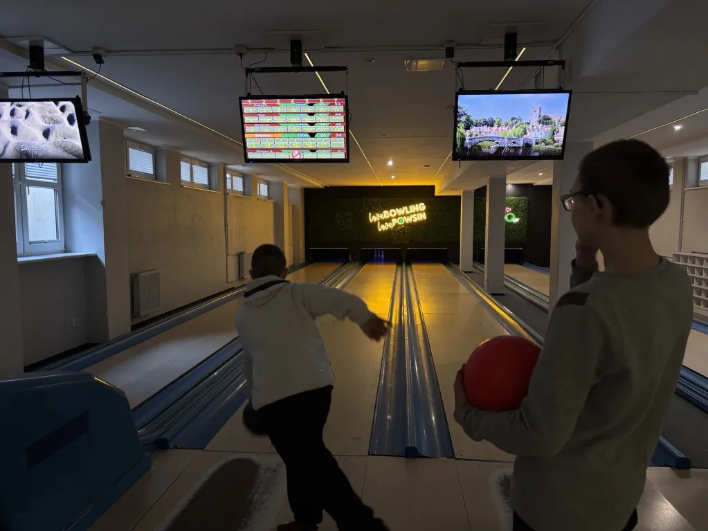 Pierwszy tydzień zimowych ferii w naszym ośrodku upłynął pod znakiem sportowych aktywności i twórczego rozwoju. Chłopcy spędzali czas na kręgielni, gdzie uczyli się zdrowej rywalizacji i współpracy, a także trenowali tajski boks, rozwijając: sprawność fizyczną, dyscyplinę i wytrwałość. Nie zabrakło zajęć plastycznych, podczas których techniką kolażu stworzyliśmy własne wizytówki, będące formą wyrażenia siebie, własnych zainteresowań i planów. Ferie okazały się czasem pełnym: inspiracji, nowych doświadczeń, odpoczynku i pozytywnej energii.