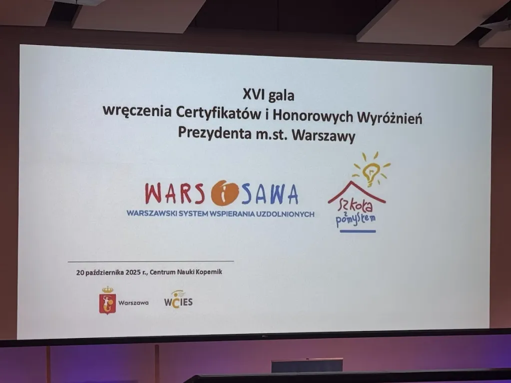 20 października w Centrum Nauki Kopernik podczas uroczystej gali wręczono Certyfikaty „Wars i Sawa” oraz Honorowe Wyróżnienia Prezydenta m.st. Warszawy „Szkoła z pomysłem”.