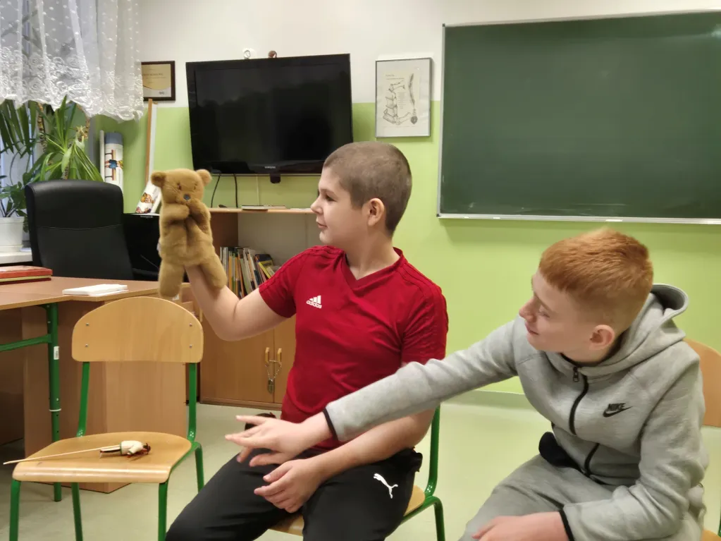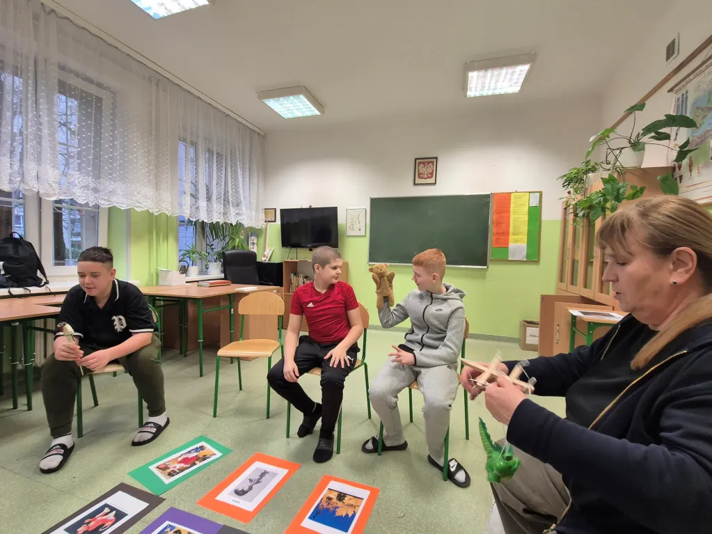 26 listopada naszym gościem była Pani Mirosława Płońska-Bartsch, aktorka Teatru Lalka, z którą rozmawialiśmy o teatrze dla dzieci. Zajęcia przybliżyły nam historię jednej z największych scen młodego widza, która nieprzerwalnie działa od 1945 r. Mowa o warszawskim Teatrze Lalka, mającym od siedemdziesięciu lat swoją siedzibę w Pałacu Kultury i Nauki. Rozmawialiśmy o różnych rodzajach lalek: jawajkach, marionetkach, pacynkach, a także spektaklach z aktualnego repertuaru. Budowaliśmy opowieść metodą improwizacji i odgrywaliśmy etiudę aktorską. Serdecznie dziękujemy gościowi za wizytę i interesującą opowieść, która przygotowała nas do świadomego odbioru przedstawienia. Do zobaczenia już niebawem w Teatrze Lalka!