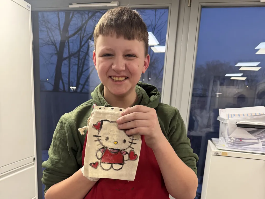 20 lutego chłopcy mieli możliwość malowania na tkaninie – do wyboru były piórniki lub woreczki na drobiazgi. Uczestnicy zajęć wykazali się dużą pomysłowością, kreatywnością oraz zaangażowaniem w pracę. Zajęcia przebiegały w miłej i twórczej atmosferze, sprzyjającej integracji grupy. Każdy opuścił warsztaty z własnoręcznie wykonanym przedmiotem oraz poczuciem satysfakcji z efektów swoich działań.