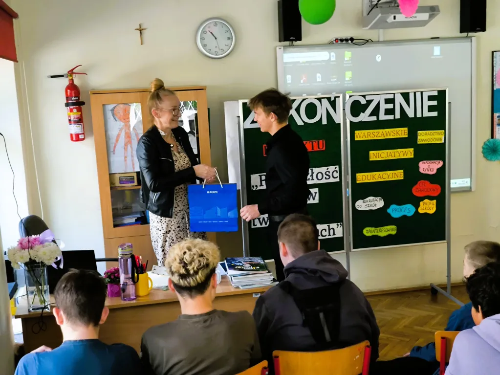 29 października 2025 r. odbyło się podsumowanie projektu, który umożliwił uczestnikom spotkanie m.in. z prawnikami oraz absolwentami Szkoły Podstawowej nr 167, którzy opowiedzieli o osobistych doświadczeniach w kontekście osiągania profesjonalnych celów. Szczególnym zainteresowaniem cieszyły się zajęcia z doradztwa zawodowego oraz warsztaty prowadzone przez mentorkę kariery – specjalistkę HR. Efektem pracy uczestników projektu było stworzenie własnych życiorysów zawodowych, co okazało się nie tylko ciekawym zadaniem, ale również ważnym krokiem w kierunku planowania przyszłości. Za swoje zaangażowanie i przygotowane CV chłopcy otrzymali nagrody rzeczowe, które były miłym podsumowaniem ich wysiłku oraz motywacją do rozwoju osobistego.