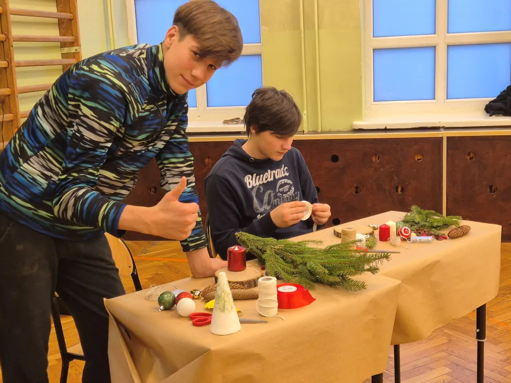 Tradycyjnie tuż przed świętami Bożego Narodzenia w naszej szkole odbywają się warsztaty rękodzieła. W tym roku spotkaliśmy się 15 grudnia, aby przygotować świerkowe stroiki. Część z nich trafiła do zaprzyjaźnionych instytucji wraz z życzeniami od naszej społeczności, a pozostałe już za chwilę zajmą honorowe miejsce na świątecznych stołach.