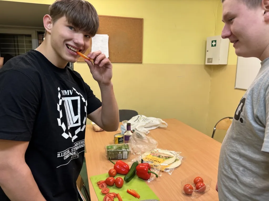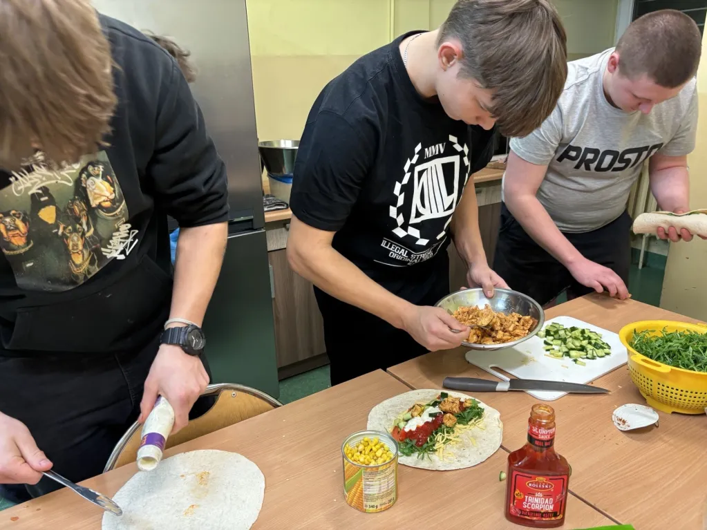 W ramach ostatnich zajęć usamodzielniających chłopcy z grupy II doskonalili umiejętności niezbędne w codziennym życiu. Uczyli się, jak zaplanować zdrowy posiłek, racjonalnie zrobić zakupy oraz bezpiecznie przygotować danie. Zajęcia zakończyły się wspólnym gotowaniem, które było nie tylko praktyczną lekcją samodzielności, ale także okazją do współpracy i integracji.