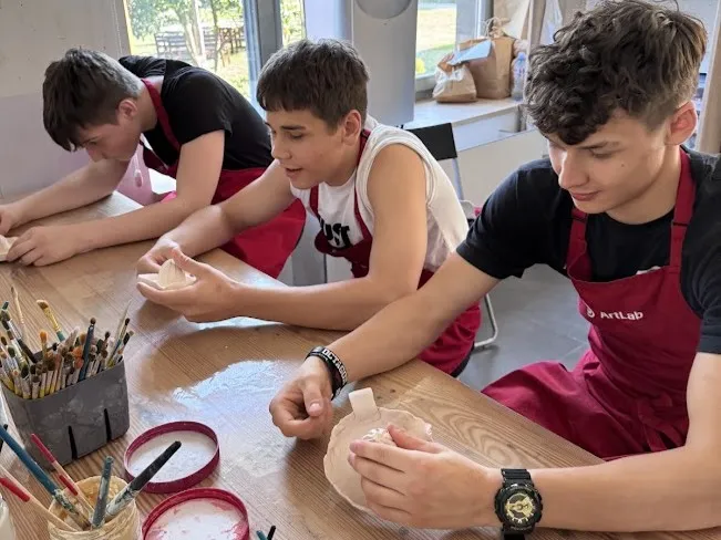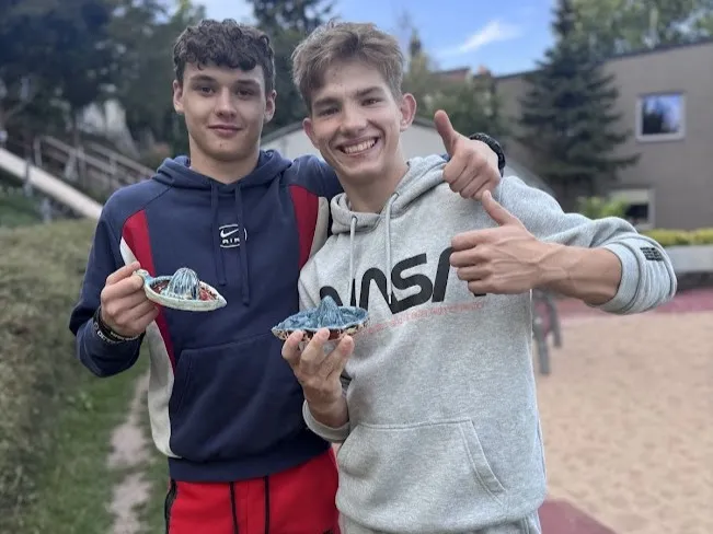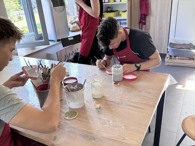 Po kilku dniach mogliśmy zobaczyć efekty naszej pracy. Wyciskarki do owoców, które wcześniej zostały starannie pokryte farbami i szkliwem, nabrały trwałości, intensywności barw oraz niepowtarzalnego charakteru. Proces wypalania nadał im ostateczny kształt i połysk, dzięki czemu każdy z uczestników może cieszyć się własnoręcznie wykonanym, estetycznym i praktycznym przedmiotem. To doświadczenie było artystyczną przygodą, ale też lekcją cierpliwości, dostarczyło wszystkim uczestnikom zajęć satysfakcji z tworzenia od podstaw.