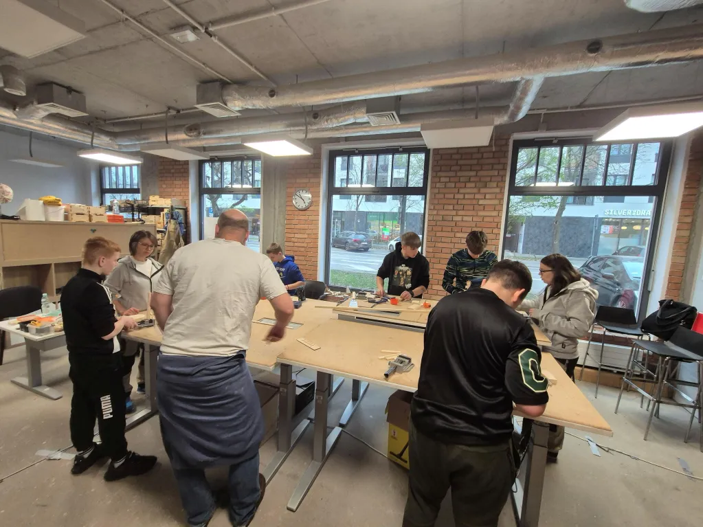 12 grudnia w pracowni stolarskiej FabLab Wbiaj! odbyły się kolejne zajęcia projektu „Uczę się majsterkować”.
